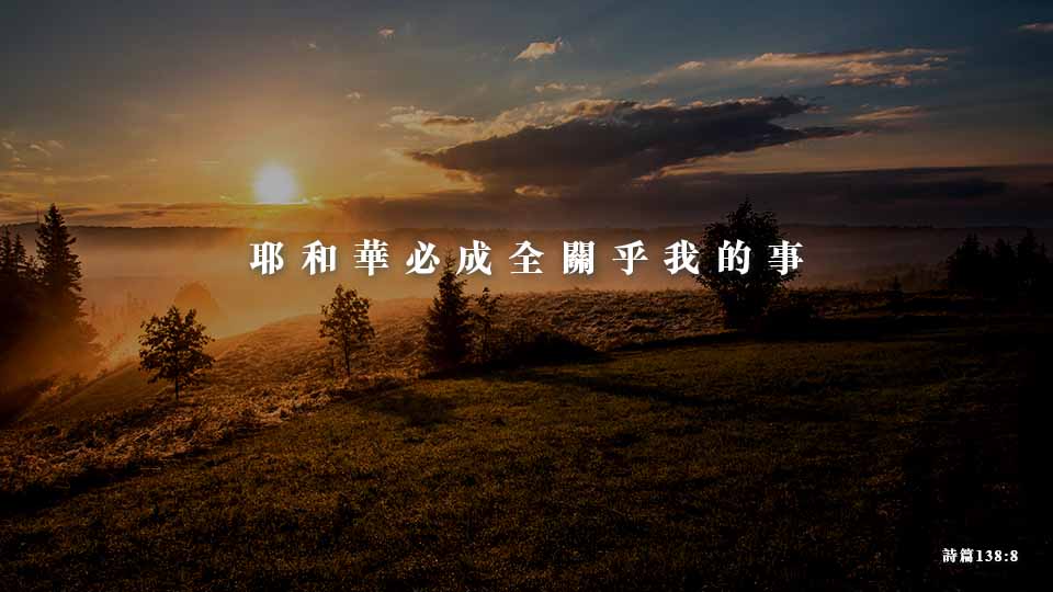 讓我們記得世上任何環境都不能夠攔阻 神的話的應驗,所以讓我們堅信祂的話沒有改變的可能,雖然世界一直在改變。神要我們單信祂的話,不用別的證據或憑據,然後祂要照著我們的信心,給我們成全。